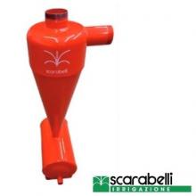 Filtro idrociclone per filtrazione primaria di sabbia a separazione centrifuga, idoneo per acque provenienti da pozzo o con solidi in sospensione di origine inorganica. L’acqua, costretta ad entrare tangenzialmente nel cilindro di separazione, subisce una notevole accelerazione centrifuga che spinge tangenzialmente verso il basso le parti solide facendo risalire al centro l’acqua pulita. I solidi, raccolti nella camera di accumulo, vengono scaricati con la valvola di spurgo. Permette l’utilizzazione di acque contenenti alte percentuali di solidi in sospensione. Il processo di verniciatura è con vernice epossidica, guarnizioni EPDM, predisposizione valvola di scarico, ingresso/uscita 90°.