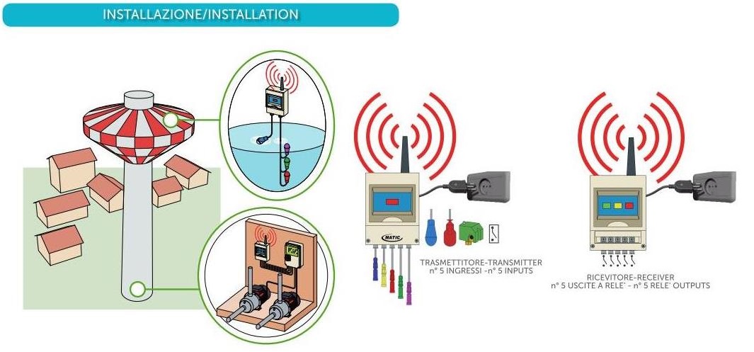 Il sistema è stato sviluppato per soddisfare la richiesta di poter TRASMETTERE a distanza segnali ON/OFF relativi per esempio ai punti d’intervento dei regolatori di livello in un serbatoio da riempire o comandi elettrici a distanza.